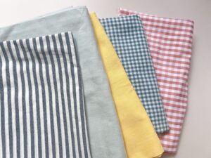柄物にはだいたい、無地の生地かシンプルなボーダーやストライプなどを合わせると良いと思います・